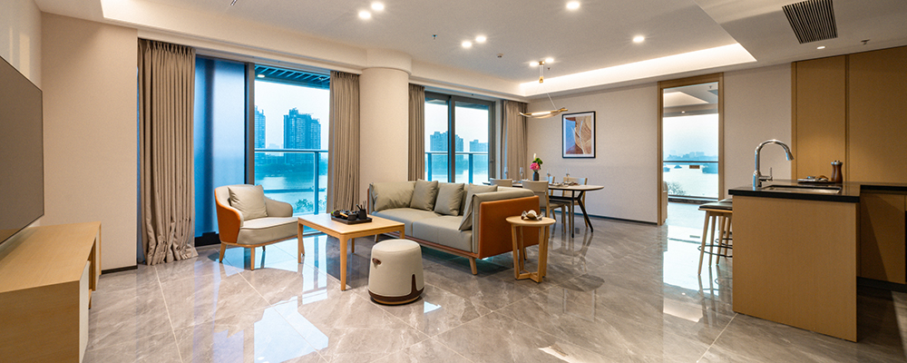 岭居臻享公寓酒店(海港汇店)坐落于广州海珠区在海港汇珠江后航道之上,以游艇流线形建筑肌理,宛如破浪前行的风帆,为都市精英构筑云端个性私邸,同步占有珠江潮汐的澎湃与千年商都的脉动。酒店由广州岭南岭居公寓酒店管理有限公司管理,是具备社区功能的高端服务式公寓酒店。