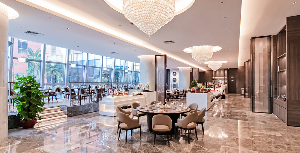 The LHG Full Time Restaurant is a western restaurant. It has star chefs to prepare classic food from worldwide, and it provide festive banquets and western buffet. The elegant restaurant is connected with the outdoor garden. A quiet environment and a natural mountain scenery near at hand make the restaurant a natural oxygen bar for guests to enjoy comfort and tranquility.